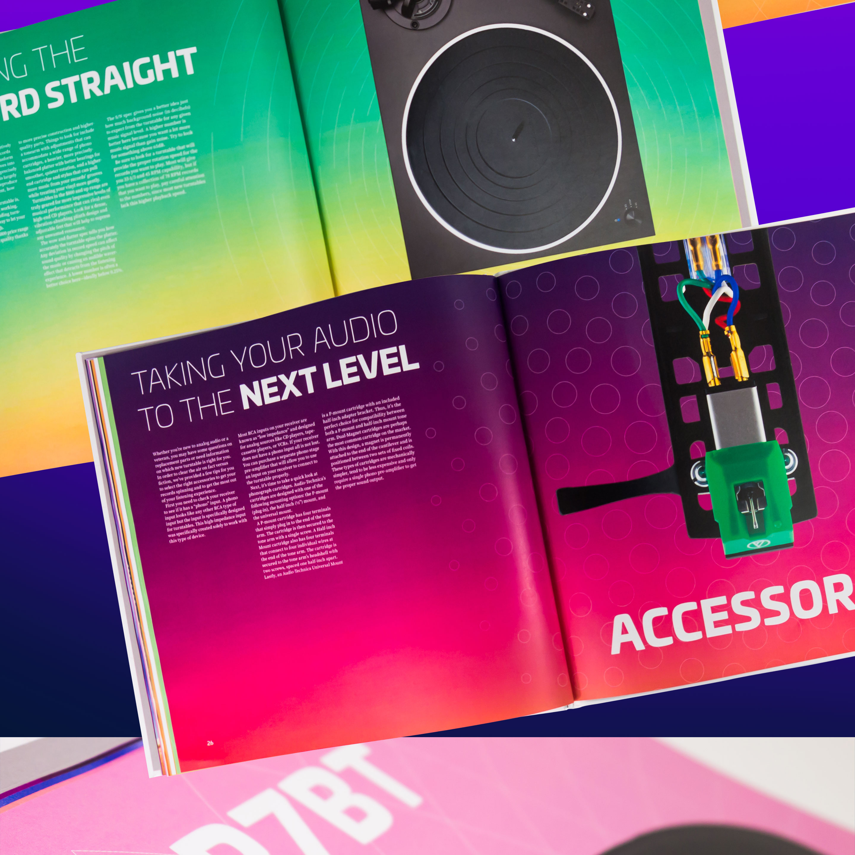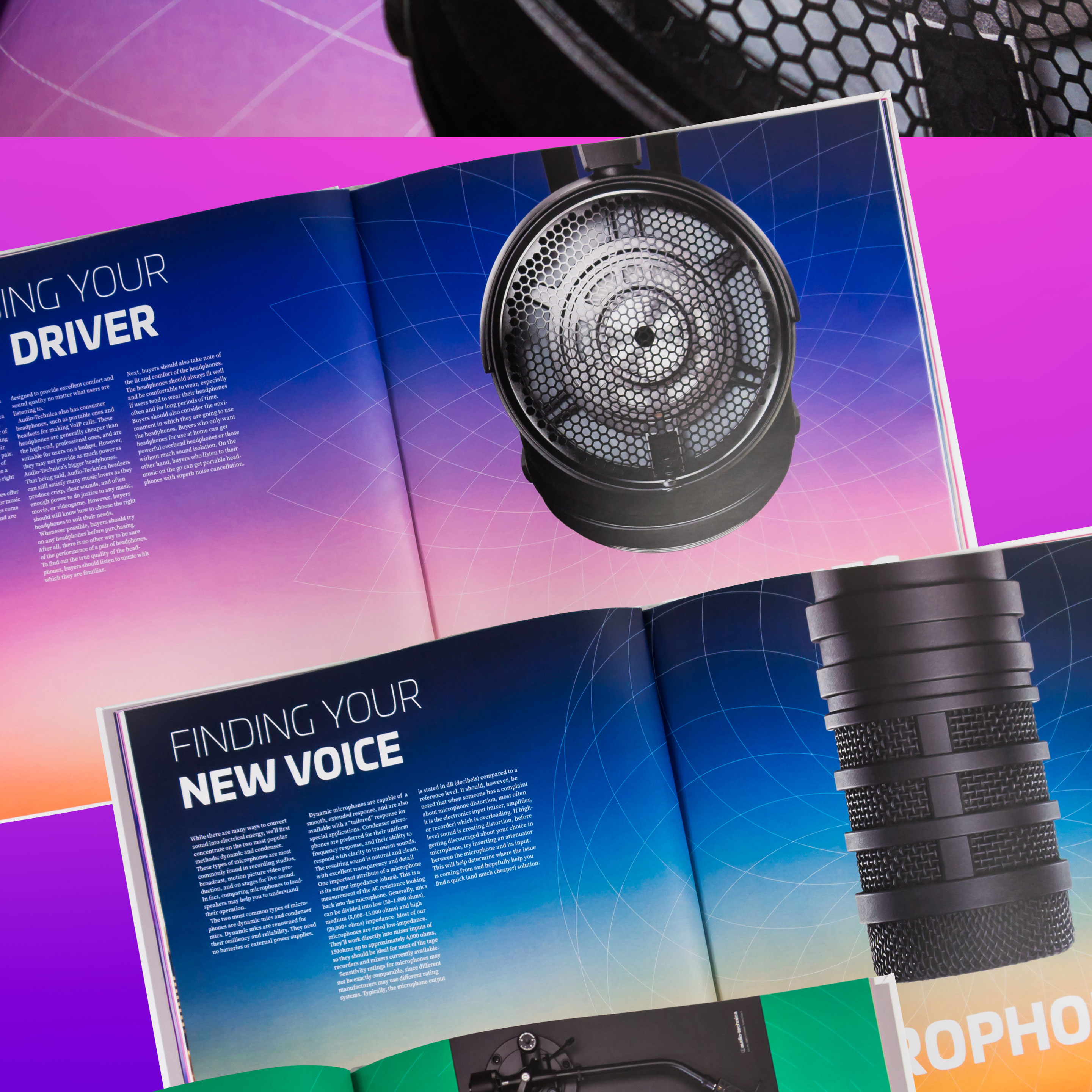 With a catalog containing over 1,500 products, Audio-Technica’s messaging had become increasingly disorganized and unfocused, without a clear brand voice. In order to solve this, I developed the 2018 Audio-technica® Consumer Catalog, categorizing each product into one of four primary product-pillars: Headphones, Microphones, Turntables, and Accessories. The catalog features a rhythmic product layout and high-resolution photography that emphasizes details of flagship products alongside radial patterns, sunrise gradients, and circular design elements referencing the Japanese flag. The piece was designed at 12” x 12” with a die-cut slipcover, mimicking a vinyl record and providing a subtle nod to the company’s early days as a turntable manufacturer. A strategic brand-voice was also developed, focused on converting new customers to the authentic listening-experience of Audio-technica’s products. Messaging was paired with stylized photography emphasizing this concept. Utilizing over-saturated background environments, happy customers are highlighted in stark contrast, immersed in the listening experience and presented in natural and authentic color tones.