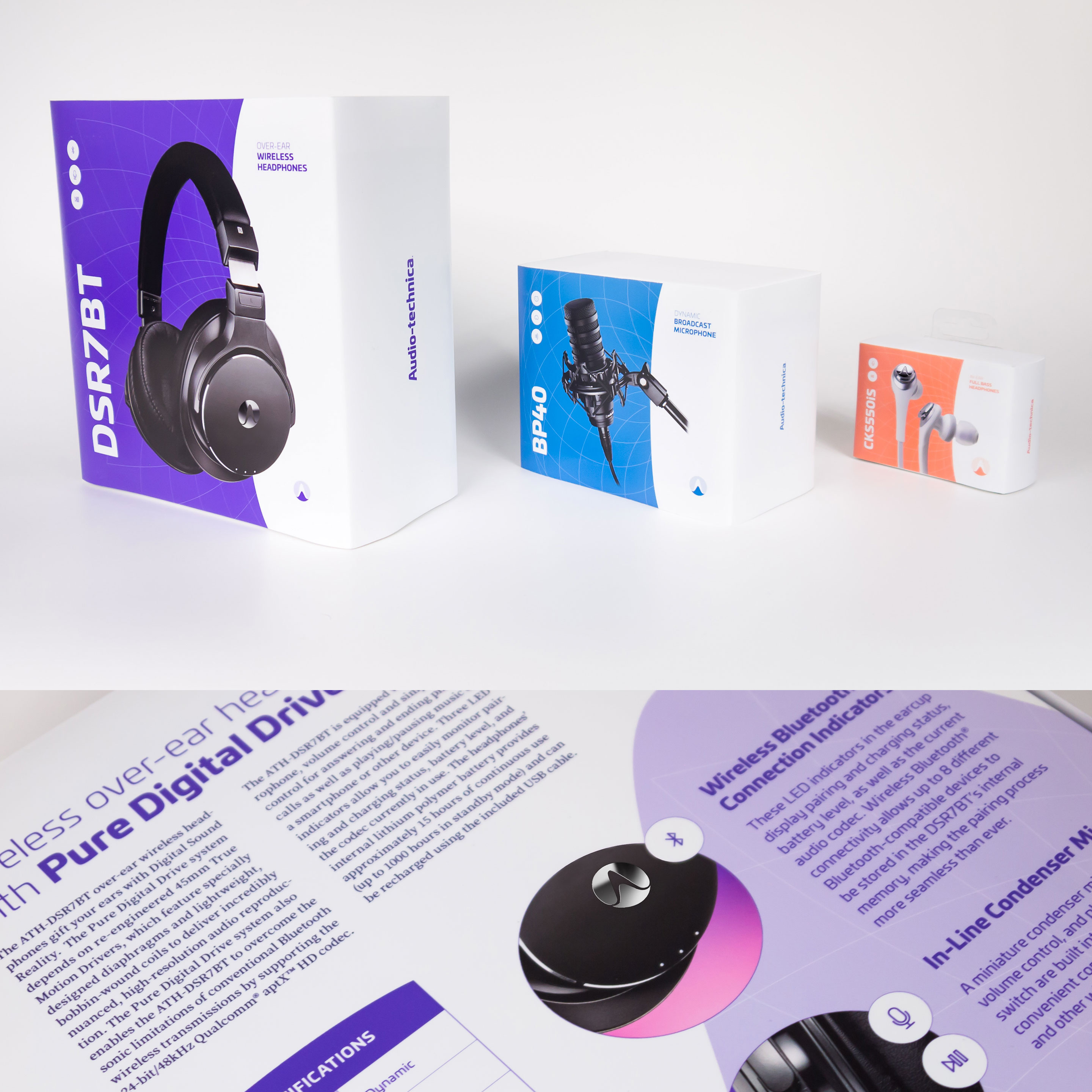 The goal of this project was to re-brand Audio-technica®, a Japanese audio equipment company that manufactures headphones, microphones, turntables, and other audio accessories. To solve the various issues the company was facing, I refined the brand identity with a waveform-inspired logo, created an organized product catalog that references the companies roots, and developed a complete lineup of packaging that showcases the premium quality of each product.
